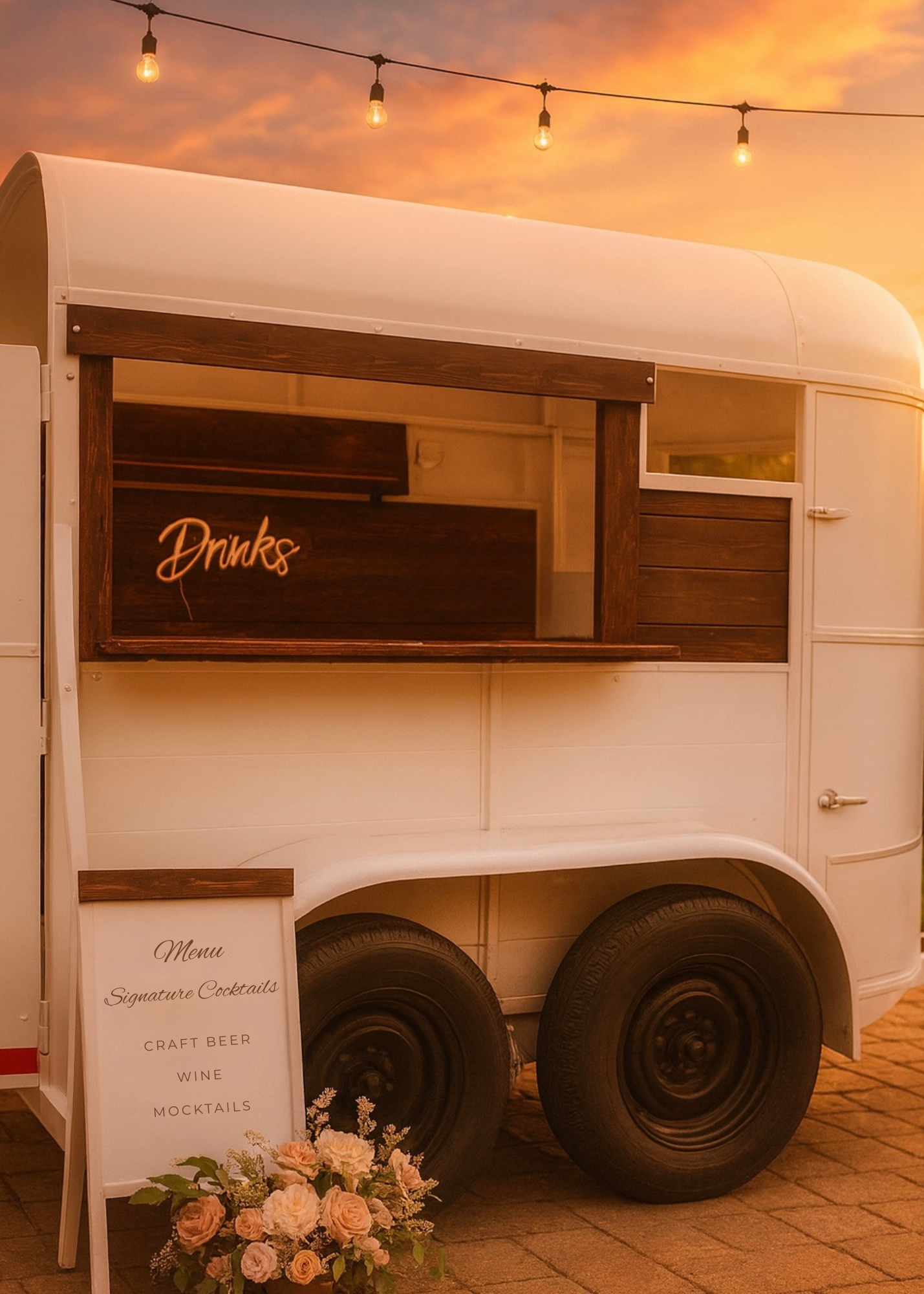Our renovated horse trailer turned mobile bar adds sophistication and charm to your event. With curated cocktails and elevated service, it becomes a show-stopping centerpiece your guests will remember.
